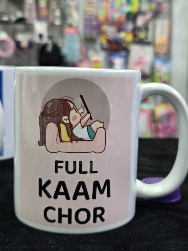 Funny mug to gift on all occasions. Full Kaam Chor (Totally Lazy) Urdu/Punjabi. High quality print on both sides, dishwasher and microwave safe