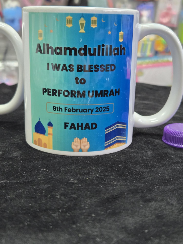 Contact us to personalise this mug with the name and date of Umrah for the receiver of this special gift. High quality print on both sides. Dishwasher and microwave safe.