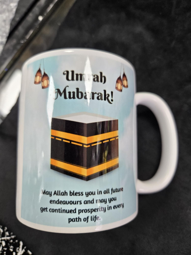 A mug to congratulate after the spiritual journey of Umrah. A special and memorable gift. Hight quality print on both sides, dishwasher and microwave safe.