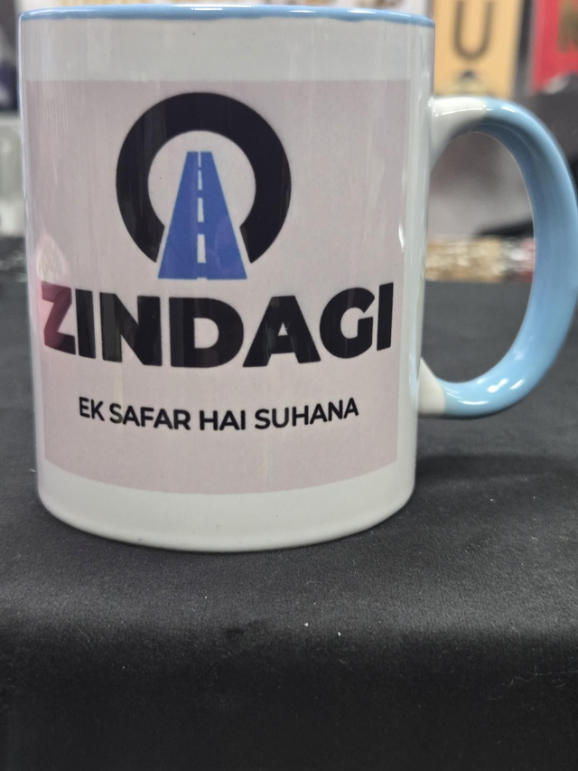 A universal gift perfect for anyone on any occasion. Zindagi ek safar hai suhana (life is a beautiful journey) Bollywood song lyrics. High quality print on both sides, blue innard and handle. Microwave and dishwasher safe.